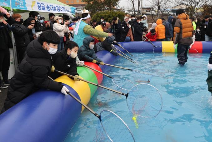 ¡®È²±Ý¼þ¾î¸¦ Àâ¾Æ¶ó¡¯´Â ÁÖÁ¦·Î ¿î¿µµÇ´Â ¼þ¾î Àâ±â üÇèÀº 13¼¼ ÀÌÇÏ ¾î¸°À̸¸ Âü¿©ÇÒ ¼ö ÀÖÀ¸¸ç, üÇèºñ 1¸¸ ¿øÀ» ³»°í Á¦ÇÑµÈ ½Ã°£ ¾È¿¡ ¶ãä·Î ¼þ¾î¸¦ Àâ´Â üÇèÀÌ´Ù. ȸÂ÷¸¶´Ù °¡Àå Å« ¼þ¾î¸¦ Àâ´Â üÇè°´¿¡´Â Ȳ±Ý¹Ù(1g)¸¦ ÁõÁ¤ÇÑ´Ù.