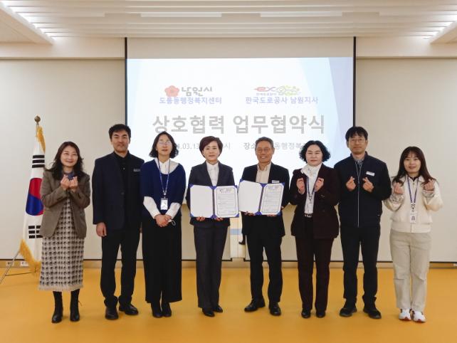 [µ¥Àϸ®Àü³² = ±è¼ºÇö ±âÀÚ] ³²¿ø½Ã µµÅ뵿ÇàÁ¤º¹Áö¼¾ÅÍ(µ¿Àå ¼Ò¼±ÀÚ)´Â Áö¿ª»çȸ º¹ÁöÇâ»óÀ» À§ÇÏ¿© Çѱ¹µµ·Î°ø»ç ³²¿øÁö»ç(Áö»çÀå À̺´Áø)¿Í 13ÀÏ ¾÷¹«Çù¾àÀ» ü°áÇÏ°í ´Ù¾çÇÑ º¹Áö»ç¾÷À» ÃßÁøÇϱâ·Î Çß´Ù.