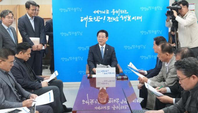 ±è¿µ·Ï Àü¶ó³²µµÁö»ç°¡ 30ÀÏ ¿ÀÀü µµÃ» ±âÀڽǿ¡¼ À¯·´¼ø¹æ ¼º°ú ¹× µµÁ¤ Çö¾È¿¡ ´ëÇÑ ±âÀÚ°£´ãȸ¸¦ Çϰí ÀÖ´Ù.