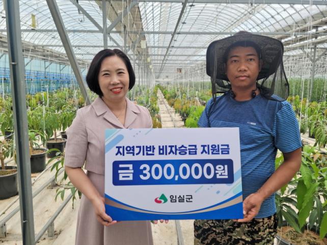 [µ¥Àϸ®Àü³² = ±è¼ºÇö ±âÀÚ] ÀӽDZºÀÌ Áö³ 2ÀÏ Ã»¿õ¸é ¼ÒÀçÀÇ ´ë·Î³óÀåÀ» ¹æ¹®ÇÏ¿© Áö¿ªÆ¯ÈÇü ¼÷·Ã±â´ÉÀη ºñÀÚ(E-7-4R)·Î ÀüȯÇÑ ¿Ü±¹ÀÎ ±Ù·ÎÀÚ¿¡°Ô ºñÀÚ ½Â±Þ Áö¿ø±Ý 30¸¸¿øÀ» Àü´ÞÇß´Ù.