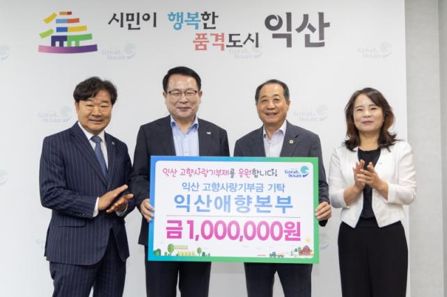 ÀÍ»ê½Ã¾ÖÇ⺻ºÎ(º»ºÎÀå ±è¿ë±Õ)´Â 24ÀÏ ÀÍ»ê½Ã¿¡ °íÇâ»ç¶û±âºÎ±Ý 100¸¸ ¿øÀ» ±âŹÇß´Ù. À̹ø ±âºÎ´Â °íÇâ»ç¶û±âºÎÁ¦ Ȱ¼ºÈ¿Í Áö¿ª»çȸ ¹ßÀü¿¡ ±â¿©Çϱâ À§ÇØ ¸¶·ÃµÆ´Ù.