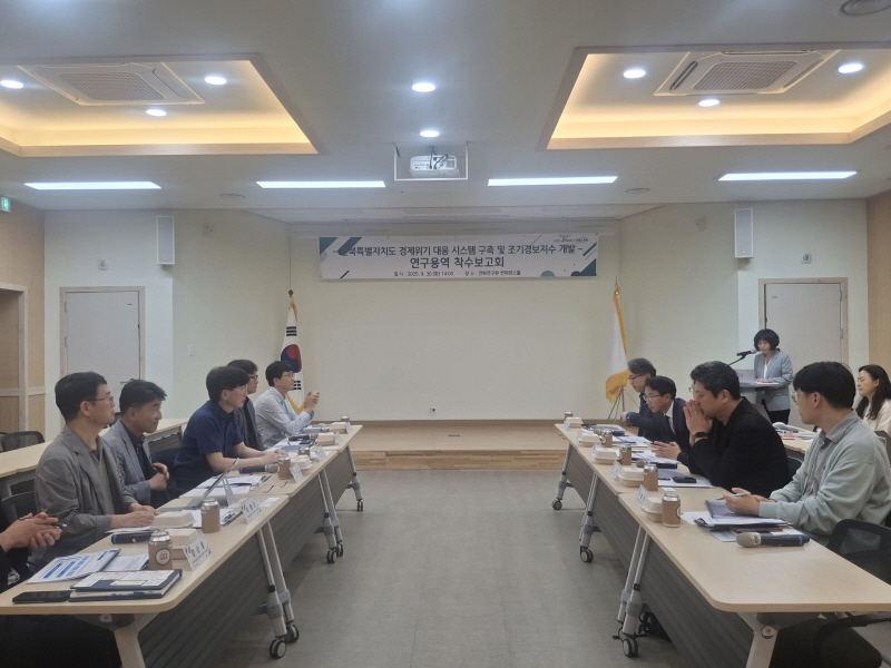 ÀüºÏµµ´Â 30ÀÏ ÀüºÏ¿¬±¸¿ø¿¡¼¡®°æÁ¦À§±â ´ëÀÀ½Ã½ºÅÛ ±¸Ãà ¹× Á¶±â°æº¸Áö¼ö °³¹ß ¿¬±¸¿ë¿ª Âø¼öº¸°íȸ¡¯¸¦ °³ÃÖÇß´Ù. À̹ø ¿¬±¸¿ë¿ªÀº ÀüºÏ¿¬±¸¿øÀÌ ¼öÇà±â°üÀ¸·Î Âü¿©ÇØ ³»³â 5¿ù±îÁö 8°³¿ù°£ ÁøÇàµÇ¸ç, Áö¿ª°æÁ¦ÀÇ À§±â ¡Èĸ¦ Á¶±â¿¡ Áø´ÜÇÏ°í ¼±Á¦ÀûÀ¸·Î ´ëÀÀÇϱâ À§ÇÑ ±â¹ÝÀ» ¸¶·ÃÇÏ´Â µ¥ ¸ñÀûÀÌ ÀÖ´Ù.