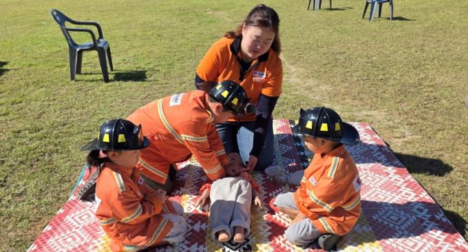 ¼Ò¹æ°ü Á÷¾÷üÇè¿¡ ³ª¼± ¾ÆÀ̵éÀÌ ¼Ò¹æ°ü º¹ÀåÀ» ÀÔ°í ÀÎ¸í±¸Á¶ Ȱµ¿À» Á÷Á¢ ¹è¿ì°í üÇèÇÏ´Â ¸ð½À.(»çÁøÁ¦°ø-³ªÁÖ½Ã) |