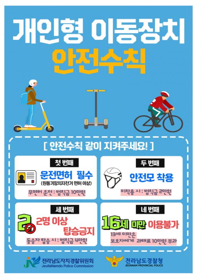 [µ¥Àϸ®Àü³² = ÃÖ¼ö¿¬ ±âÀÚ] Àü¶ó³²µµÀÚÄ¡°æÂûÀ§¿øÈ¸(À§¿øÀå Á¤¼ø°ü)¿Í Àü³²°æÂûûÀº Ãֱ٠û¼Ò³âÀÇ °³ÀÎÇü À̵¿ÀåÄ¡ ¹«¸éÇã ¿îÀüÀÌ ±ÞÁõÇÔ¿¡ µû¶ó, ¸éÇã È®ÀÎ ÀýÂ÷¸¦ ¼ÒȦÈ÷ ÇÑ ´ë¿©¾÷ü¸¦ Çü¹ý»ó ¡®¹«¸éÇã ¹æÁ¶ÇàÀ§¡¯·Î Àû±Ø ´Ü¼ÓŰ·Î Çß´Ù.