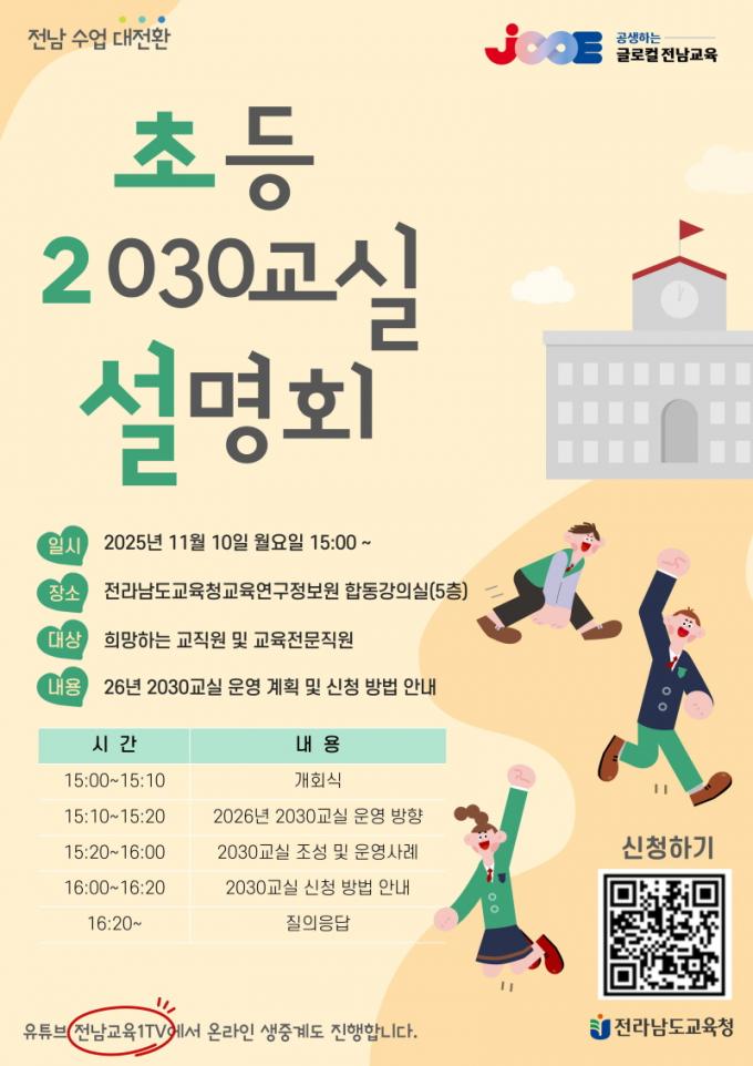 ÀÌ¿Í °ü·ÃÇØ Àü³²±³À°Ã»Àº ¿À´Â 10ÀÏ ¿ÀÈÄ 3½Ã Àü¶ó³²µµ±³À°Ã»±³À°¿¬±¸Á¤º¸¿ø¿¡¼ ¡®Ãʵî 2030±³½Ç ¼³¸íȸ¡¯¸¦ ¿¾î 2026Çг⵵ 2030±³½Ç ¿î¿µ °èȹ°ú ½Åû ¹æ¹ýÀ» ¾È³»ÇÑ´Ù. ¼³¸íȸ´Â ¿î¿µ ¹æÇ⠾ȳ»¿Í »ç·Ê ³ª´®, ½Åû ÀýÂ÷ ¹× ÁúÀÇÀÀ´ä ¼øÀ¸·Î ÁøÇàµÇ¸ç, °ü½É ÀÖ´Â ±³Á÷¿øÀº °ø¹® ¹× Æ÷½ºÅÍ QRÄڵ带 ÅëÇØ Âü¿©ÇÒ ¼ö ÀÖ´Ù. ´çÀÏ Çà»ç´Â À¯Æ©ºê ¡®Àü³²±³À°1TV¡¯¸¦ ÅëÇØ ½Ç½Ã°£ Áß°èµÈ´Ù.