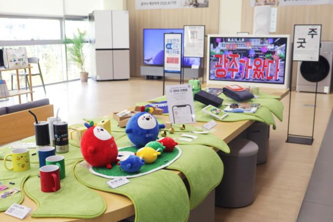 À̹ø Àü½Ã´Â Áö¿ª »óǰÀ» È«º¸ÇÏ°í ÆÇ·Î¸¦ È®´ëÇϱâ À§ÇÑ ¡®¸ÞÀ̵åÀÎ ±¤ÁÖ(Made in Gwangju)¡¯ Àü½ÃȸÀÇ ÀϺδÙ. ¡®¹«µî»ê ½º³ëº¼¡¯, ¡®¿À¸Å³ª °ñÇÁ¿ëǰ ¼¼Æ®¡¯, ¡®ÀÌÆË³ª¹« ºñ´©¡¯ µî ±¤ÁÖ °ü±¤ ±â³äǰ(±ÂÁî)À» »ï¼ºÀüÀÚ ±¤ÁÖ»ç¾÷Àå¿¡¼ »ý»êµÈ °¡Àü°ú ÇÔ²² Àü½ÃÇÑ´Ù.