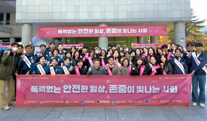 [µ¥Àϸ®Àü³² = ÃÖ¼ö¿¬ ±âÀÚ] ±¤ÁÖ±¤¿ª½Ã(½ÃÀå °±âÁ¤)´Â ¡®¿©¼ºÆø·Â Ãß¹æÁÖ°£¡¯(11¿ù25ÀÏ~12¿ù1ÀÏ)À» ¸Â¾Æ 5ÀÏ Á¶¼±´ëÇб³ Áß¾Óµµ¼°ü ±¤Àå¿¡¼ ¡®Æø·Â ¾ø´Â ¾ÈÀüÇÑ ÀÏ»ó, Á¸ÁßÀÌ ºû³ª´Â »çȸ¡¯¸¦ ÁÖÁ¦·Î ÇÕµ¿ Ä·ÆäÀÎÀ» ½Ç½ÃÇß´Ù.