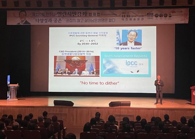 450¿© ¸íÀÇ ½Ã¹ÎÀÌ Âü¼®ÇÑ À̹ø °Á¿¡´Â ÃÖÀçõ ÀÌÈ¿©´ë ¸í¿¹±³¼ö°¡ °»ç·Î ÃÊûµÅ ¡®´Ù¾ç¼º°ú °øÁ¸, ¼ÕÀâÁö ¾Ê°í »ì¾Æ³²Àº »ý¸íÀº ¾ø´Ù¡¯¸¦ ÁÖÁ¦·Î ¿°À» ÆîÃÆ´Ù.
