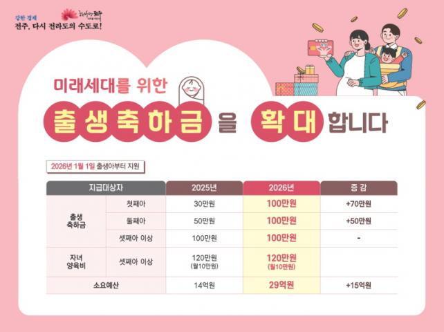 ÀüÁÖ½Ã, 2026³â ¸ðµç Ãâ»ý¾Æ Ãâ»ýÃàÇÏ±Ý 100¸¸ ¿ø Áö±Þ