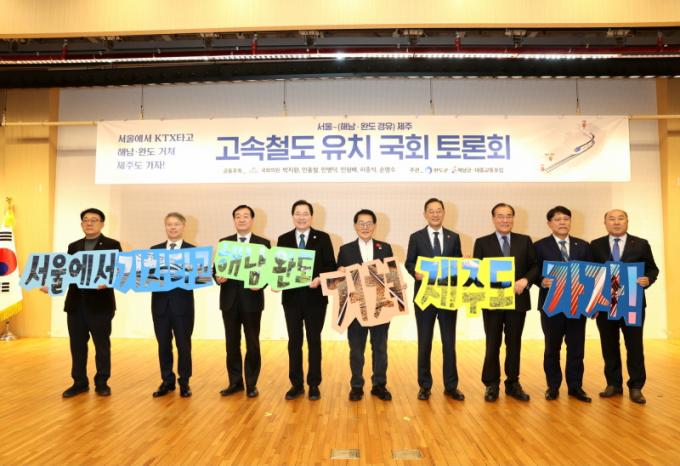 À̹ø Åä·Ðȸ´Â ¼¿ï~Á¦ÁÖ °í¼Óöµµ »ç¾÷À» Á¦5Â÷ ±¹°¡Ã¶µµ¸Á ±¸Ãà°èȹ¿¡ ¹Ý¿µÇϱâ À§ÇÑ ±¹¹Î °ø°¨´ë Çü¼ºÀ» À§ÇØ ¸¶·ÃµÆ´Ù. ÇØ³²¡¤¿Ïµµ¡¤Áøµµ Áö¿ª±¸ ¹ÚÁö¿ø ±¹È¸ÀÇ¿øÀ» ºñ·ÔÇØ ¹Îȫö, ¹Îº´´ö, ¹ÎÇü¹è, ÇãÁ¾½Ä, ¼Õ¸í¼ö ÀÇ¿øÀÌ °øµ¿ ÁÖÃÖÇϰí, ÇØ³²±º, ¿Ïµµ±º, ´ëÁß±³ÅëÆ÷·³ÀÌ °øµ¿ ÁÖ°üÇß´Ù.