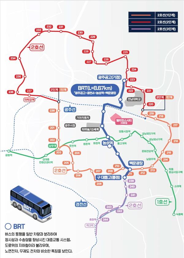 ±¤Áֽô °£¼±±ÞÇà¹ö½ºÃ¼°è(BRT) µµÀÔÀ» ÅëÇØ ´ëÁß±³Åë ¼Óµµ¿Í Á¤½Ã¼ºÀ» ³ôÀÌ°í ½Ã¹Î ÀÌ¿ë ÆíÀǼºÀ» °ÈÇÒ ¹æÄ§ÀÌ´Ù.