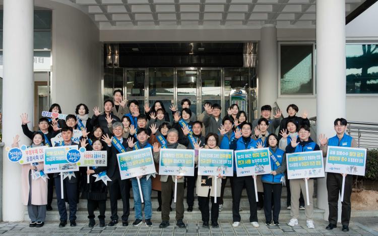 ¿µ±¤±º Á÷¿øµéÀÌ ±ºÃ» û»ç ¾Õ¿¡¼ ¡®Á¶Á÷¹®È °³¼± »õ·Î°íħ(F5)¡¯ Ä·ÆäÀο¡ Âü¿©ÇÏ¸ç ½Çõ ¸Þ½ÃÁö°¡ ´ã±ä ÇÇÄÏÀ» µé°í ÀÖ´Ù.