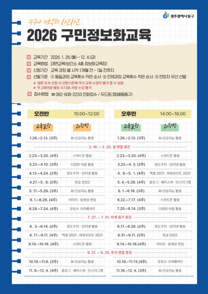 [µ¥Àϸ®Àü³² = ÃÖ¼ö¿¬ ±âÀÚ] ±¤Áֽà µ¿±¸´Â »ýȰ ¼Ó µðÁöÅРȰ¿ë ´É·ÂÀ» ³ô¿© ÁֹεéÀÇ »îÀÇ ÁúÀ» Çâ»ó½Ã۱â À§ÇØ ÁֹΠ¸ÂÃãÇü Á¤º¸È ±³À°ÀÎ ¡®±¸¹Î Á¤º¸È ±³½Ç¡¯À» ÀÌ´Þ 26ÀϺÎÅÍ ¿¬Áß ¿î¿µÇÑ´Ù°í ¹àÇû´Ù.