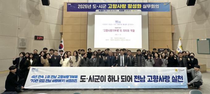 [µ¥Àϸ®Àü³² = ÃÖ¼ö¿¬ ±âÀÚ] Àü¶ó³²µµ´Â 23ÀÏ 22°³ ½Ã±º°ú ÇÔ²² °íÇâ»ç¶û±âºÎÁ¦ 4³â ¿¬¼Ó Àü±¹ 1À§, Àü³² »ç¶û¾Ö(äñ) ¼Æ÷ÅÍÁî 70¸¸ ¸í ¸ðÁý ¸ñÇ¥ ´Þ¼ºÀ» À§ÇÑ °íÇâ»ç¶û Ȱ¼ºÈ ½Ç¹«È¸ÀǸ¦ ¿°í, °øµ¿ Çù·Â ¹æ¾ÈÀ» ³íÀÇÇß´Ù.