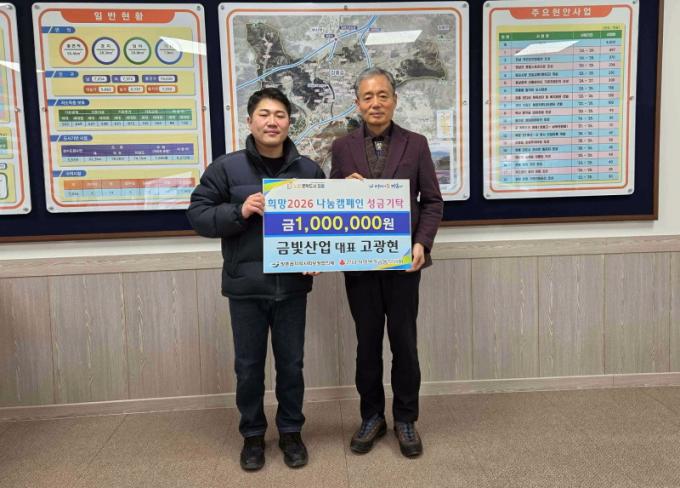 [µ¥Àϸ®Àü³² = ÃÖ¼ö¿¬ ±âÀÚ] ÀåÈﱺ ÀåÈïÀ¾ ¼ÒÀç °Ç¼³¾÷ü ±Ýºû»ê¾÷(´ëÇ¥ °í±¤Çö)Àº 26ÀÏ ÀåÈïÀ¾ÇàÁ¤º¹Áö¼¾Å͸¦ ¹æ¹®ÇØ Áö¿ªÀÇ ¾î·Á¿î ÀÌ¿ôµéÀ» À§ÇØ »ç¿ëÇØ ´Þ¶ó¸ç ¼º±Ý 100¸¸ ¿øÀ» ±âŹÇß´Ù.