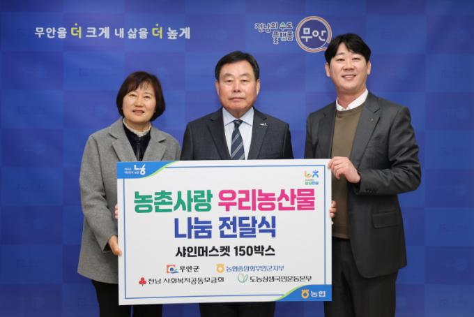 Áö³ 10ÀÏ ±ºÃ»¿¡¼ ¿¸° ±âŹ½Ä¿¡¼´Â NH³óÇù ¹«¾È±ºÁöºÎ(ÁöºÎÀå ÃÖÆò°)°¡ µµ³ó »ó»ý Â÷¿øÀÇ ¿ì¸® ³ó»ê¹° ³ª´® Ȱµ¿À¸·Î 420¸¸ ¿ø »ó´çÀÇ °úÀÏ 150¹Ú½º¸¦ Àü´ÞÇß´Ù.
