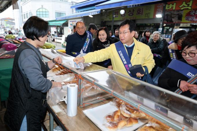 [µ¥Àϸ®Àü³² = ÃÖ¼ö¿¬ ±âÀÚ] ¹Úº´±Ô ±¤»ê±¸Ã»ÀåÀÌ ±¤»ê±¸ °øÁ÷ÀÚµé°ú 11ÀÏ ¼ÛÁ¤¸ÅÀϽÃÀå¿¡¼ ¼³ ¸íÀý¸ÂÀÌ ÀüÅë½ÃÀå À庸±â Çà»ç¿Í ÇÔ²² ¹°°¡¾ÈÁ¤ Ä·ÆäÀÎÀ» ÁøÇàÇß´Ù.