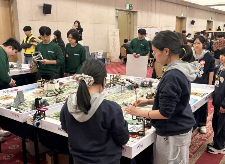 | FIRST LEGO League Korea º»¼± ´ëȸ ÇöÀå¿¡¼ Âü°¡ ÇлýµéÀÌ ·Îº¿ ¹Ì¼Ç Å×ÀÌºí ¾Õ¿¡¼ ·Îº¿À» Á¶Á¤ÇÏ¸ç °æ±â¸¦ ÁøÇàÇϰí ÀÖ´Ù. ÆÀ¿øµéÀº ¿ªÇÒÀ» ³ª´² Àü·«À» Á¡°ËÇϰí, ÄÚµù°ú ¼³°è °á°ú¸¦ ½ÇÀü¿¡¼ ±¸ÇöÇϸç Çùµ¿ÀÇ ÈûÀ» ¹ßÈÖÇϰí ÀÖ´Ù. /»çÁø:¿µ±¤ºÒ°©ÃÊ Á¦°ø |