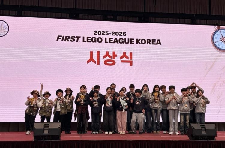 2025-2026 FIRST LEGO League Korea ½Ã»ó½Ä¿¡¼ ¡®Teamwork Award(Çùµ¿»ó)¡¯¸¦ ¼ö»óÇÑ ÇлýµéÀÌ ¹«´ë À§¿¡¼ Æ®·ÎÇǸ¦ µé°í ±â³äÃÔ¿µÀ» Çϰí ÀÖ´Ù. ÇлýµéÀÇ È¯ÇÑ Ç¥Á¤°ú ´ç´çÇÑ Æ÷Áî°¡ Àü±¹´ëȸ º»¼± ¼ö»óÀÇ ±â»Ý°ú ¼¼°è´ëȸ ÁøÃâÀÇ ¼º°ú¸¦ º¸¿©ÁØ´Ù. /»çÁø:¿µ±¤ºÒ°©ÃÊ Á¦°ø