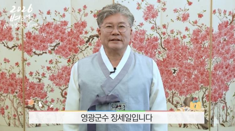 Àå¼¼ÀÏ ¿µ±¤±º¼ö°¡ 2026³â ¼³ ¸íÀýÀ» ¸Â¾Æ ÇѺ¹ Â÷¸²À¸·Î ½Å³â ÀλçÀ» Çϰí ÀÖ´Ù. ºÓÀº ¸ÅÈ º´Ç³À» ¹è°æÀ¸·Î ¡°¿µ±¤±º¼ö Àå¼¼ÀÏÀÔ´Ï´Ù¡±¶ó°í ¹àÈ÷¸ç ±º¹Îµé¿¡°Ô »õÇØ Àλ縦 ÀüÇÏ´Â ¸ð½À. /»çÁø:Àå¼¼ÀÏ ±º¼ö ÆäÀ̽ººÏ ĸÃÄ