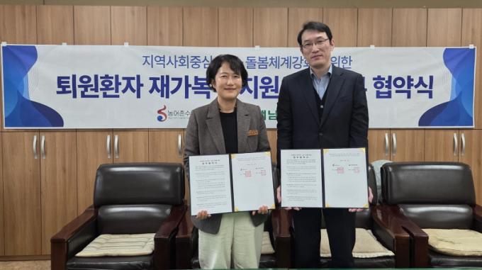 ÇØ³²±º°ú ÇØ³²Á¾ÇÕº´¿ø(¿øÀå ±èµ¿±¹), ÇØ³²¿ì¸®Á¾ÇÕº´¿ø(¿øÀå ±è¿Á¹Î)Àº Áö³ 6ÀÏ¡®Åð¿ø È¯ÀÚ Àç°¡ º¹±Í Áö¿øÀ» À§ÇÑ ¾÷¹« Çù¾à¡¯À» ü°áÇß´Ù. À̹ø Çù¾àÀº Àü¹® ÀÇ·á »çȸº¹Áö»ç°¡ »óÁÖÇÏ´Â Áö¿ª ÀÇ·á±â°ü°ú Çù·ÂÇØ Åð¿ø Á÷ÈÄ ¹ß»ýÇÒ ¼ö Àִ¡®µ¹º½ °ø¹é¡¯À» ¸Þ¿ì±â À§ÇØ ¸¶·ÃµÆ´Ù.