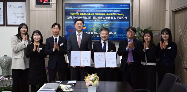 ±èÁ¦½Ã´Â ¡¸2026³â Åë»ó¸¶½ºÅÍ YOUTH »ç¾÷¡¹ ÃßÁøÀ» À§ÇØ 19ÀÏ Á¤¼ºÁÖ ±èÁ¦½ÃÀå, ¼ÇØ¿µ ¼ºÀåÀü·«½ÇÀå, À±¿©ºÀ °æÁ¦Åë»óÁøÈï¿ø ¿øÀå, ±è±¤Èñ ¸¶ÄÉÆÃÅë»óº»ºÎÀå°ú ÇÔ²² ¾÷¹«Çù¾àÀ» ü°áÇß´Ù°í ¹àÇû´Ù.