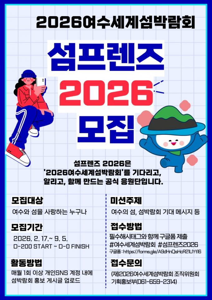 [µ¥Àϸ®Àü³² = ÃÖ¼ö¿¬ ±âÀÚ] 2026¿©¼ö¼¼°è¼¶¹Ú¶÷ȸÁ¶Á÷À§¿øÈ¸(ÀÌÇÏ ¡®Á¶Á÷À§¡¯)°¡ 2026¿©¼ö¼¼°è¼¶¹Ú¶÷ȸ °ø½Ä ÀÀ¿ø´Ü ¡®¼¶ÇÁ·»Á¸¦ ¸ðÁýÇÑ´Ù.