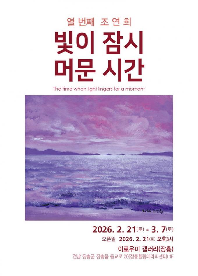 [µ¥Àϸ®Àü³² = ÃÖ¼ö¿¬ ±âÀÚ] Âû³ªÀÇ ºûÀÌ ¸Ó¹«´Â ¹Ù´ÙÀÇ Ç³°æÀ» ÅëÇØ ³»¸éÀÇ ±×¸®¿ò°ú Ä¡À¯¸¦ ³ë·¡ÇÏ´Â Á¶¿¬Èñ ÀÛ°¡ÀÇ °³ÀÎÀü <ºûÀÌ Àá½Ã ¸Ó¹«´Â ½Ã°£>ÀÌ ¿À´Â 2¿ù 21ÀϺÎÅÍ 3¿ù 7ÀϱîÁö ÀåÈïÀ¾ ¼ÒÀç ¡®À̷οì¹Ì °¶·¯¸®¡¯¿¡¼ ¿¸°´Ù.