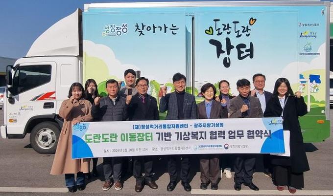 [µ¥Àϸ®Àü³² = ÃÖ¼ö¿¬ ±âÀÚ] ±¤ÁÖÁö¹æ±â»óû(ûÀå Á¤Çö¼÷)°ú (Àç)À强¸Ô°Å¸®ÅëÇÕÁö¿ø¼¾ÅÍ(ÀÌ»çÀå ½É¿ìÁ¤)´Â À强±º ¹èÈĸ¶À» À̵¿ÀåÅ͸¦ Ȱ¿ëÇÏ¿© ¸¶À»ÁÖ¹ÎÀ» ´ë»óÀ¸·Î ¿µÇ⿹º¸¿Í À§Çè±â»óÁ¤º¸¸¦ È¿°úÀûÀ¸·Î Àü´ÞÇϰí, Æø¿°‧ÇÑÆÄ µî ±â»óÀçÇØ ÇÇÇØ¸¦ ¿¹¹æÇϱâ À§ÇØ 2¿ù 20ÀÏ(±Ý) À强¸Ô°Å¸®ÅëÇÕÁö¿ø¼¾ÅÍ¿¡¼ ¾÷¹«Çù¾à(MOU)À» ü°áÇß´Ù°í ¹àÇû´Ù.