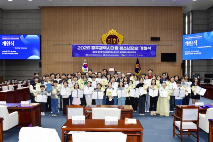 [µ¥Àϸ®Àü³² = ÃÖ¼ö¿¬ ±âÀÚ] 2026³â ±¤ÁÖ±¤¿ª½Ã ¾Æµ¿¡¤Ã»¼Ò³âÀ» ´ëÇ¥ÇÒ Á¦6´ë ¾Æµ¿ÀÇȸ¿Í Á¦10´ë û¼Ò³âÀÇȸ°¡ 2¿ù 21ÀÏ, ±¤ÁÖ±¤¿ª½ÃÀÇȸ º»È¸ÀÇÀå¿¡¼ °³¿ø½ÄÀ» ¿°í º»°ÝÀûÀÎ ÀÇÁ¤È°µ¿ÀÇ ½ÃÀÛÀ» ¾Ë·È´Ù.
