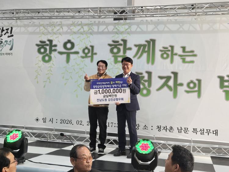 Àü³²µµÃ» °Áø±ºÇâ¿ìȸ°¡ 21ÀÏ °³¸·ÇÑ °ÁøÃ»ÀÚÃàÁ¦ ÇöÀå¿¡¼ °Áø±º¹ÎÀåÇÐÀç´Ü¿¡ ÀåÇÐ±Ý 100¸¸ ¿øÀ» ±âŹÇß´Ù. ÃàÁ¦ÀÇ ½ÃÀÛ°ú ÇÔ²² Áö¿ª ÀÎÀç À°¼ºÀ» À§ÇÑ ¡®°íÇâ ÅõÀÚ¡¯¸¦ ½ÇõÇÑ °ÍÀÌ´Ù.
