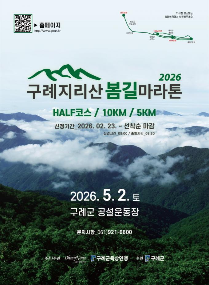 [µ¥Àϸ®Àü³² = ÃÖ¼ö¿¬ ±âÀÚ] ±¸·Ê±ºÀº ¾Æ¸§´Ù¿î ÀÚ¿¬È¯°æÀ» ¹è°æÀ¸·Î ÇÑ ¡®Á¦1ȸ ±¸·Ê Áö¸®»êº½±æ ¸¶¶óÅæ´ëȸ¡¯°¡ ¿À´Â 5¿ù 2ÀÏ(Åä) ±¸·Ê°ø¼³¿îµ¿Àå¿¡¼ °³ÃÖµÈ´Ù°í ¹àÇû´Ù.