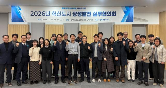 [µ¥Àϸ®Àü³² = ±è¼ºÇö ±âÀÚ] ÀüºÏƯº°ÀÚÄ¡µµ´Â 24ÀÏ ÀüºÏÇõ½Åµµ½Ã Å×Å©ºñÁî¼¾ÅÍ¿¡¼ ±¹Åä±³ÅëºÎ¿Í ÀÌÀü°ø°ø±â°ü, ÀüÁÖ½Ã, ¿ÏÁÖ±º °ü°èÀÚ µî 20¿© ¸íÀÌ Âü¼®ÇÑ °¡¿îµ¥ ¡®2026³â Çõ½Åµµ½Ã »ó»ý¹ßÀü ½Ç¹«ÇùÀÇȸ¡¯¸¦ °³ÃÖÇß´Ù.