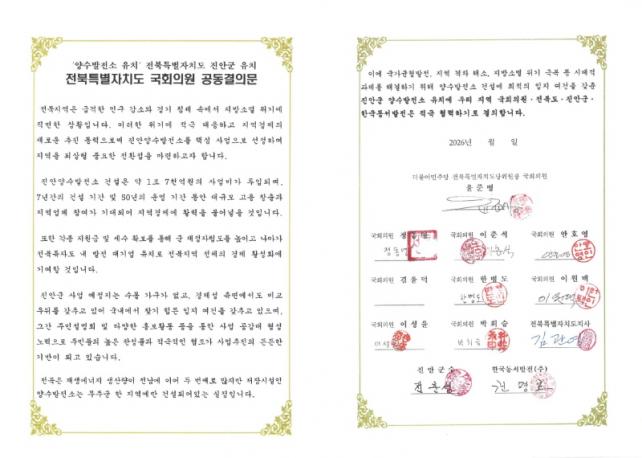 [µ¥Àϸ®Àü³² = ±è¼ºÇö ±âÀÚ] Áø¾È±ºÀÌ Áö¿ªÀÇ ÇÙ½É Çö¾ÈÀÎ ¾ç¼ö¹ßÀü¼Ò À¯Ä¡¸¦ À§ÇØ ÀüºÏ Á¤Ä¡±Ç°ú ÇàÁ¤ÀÌ ÇÔ²²ÇÏ´Â Çù·Â ü°è¸¦ À̲ø¾î ³»¸ç º»°Ý Çຸ¿¡ ³ª¼¹´Ù.