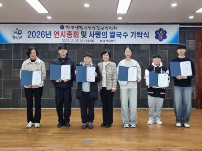 [µ¥Àϸ®Àü³² = Á¤Ã¶¿ø ±âÀÚ] Çѱ¹»ýȰ°³¼±¿µ±¤±º¿¬ÇÕȸ(ȸÀå ¿ø¼øÀÚ)¿Í ¿µ±¤±º³ó¾÷±â¼ú¼¾ÅÍ(¼ÒÀå Á¤Àç¿í)´Â Áö³ 25ÀÏ ¿µ±¤±º³ó¾÷±â¼ú¼¾ÅÍ¿¡¼ »õÇØ¸ÂÀÌ ¿¬½ÃÃÑȸ¸¦ °³ÃÖÇÏ¸ç »ç¶ûÀÇ ½Ò±¹¼ö 44¹Ú½º(100¸¸¿ø »ó´ç)°ú °ü³» ¿ì¼öÇлý 6¸í¿¡°Ô ÀåÇбÝÀ» Àü´ÞÇÏ¿´´Ù.