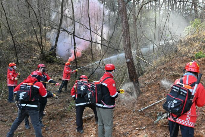 À̹ø ÈÆ·ÃÀº ¼±¸Ã», »ê¸²Àç³´ëÀÀ´Ü, ¼ºÎ¼Ò¹æ¼ µî °ü°è±â°ü 50¿© ¸íÀÌ Âü¿©ÇßÀ¸¸ç »êºÒÁøÈÂ÷¿Í ¼Ò¹æÂ÷, µîÁüÆßÇÁ µî Àåºñ¸¦ µ¿¿øÇØ »êºÒ Ãʵ¿ ´ëÀÀºÎÅÍ ÁøÈ ¿Ï·á±îÁö Àü °úÁ¤À» ½ÇÁ¦ »óȲó·³ ¿î¿µÇß´Ù.