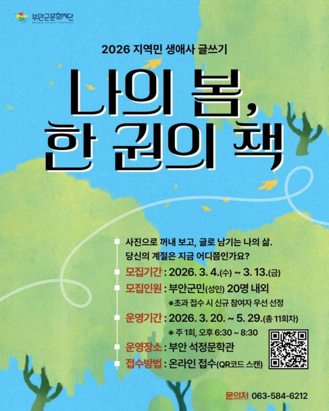 [µ¥Àϸ®Àü³² = ±è¼ºÇö ±âÀÚ] ºÎ¾È±º¹®ÈÀç´Ü(ÀÌ»çÀå ±ÇÀÍÇö)ÀÌ Áö¿ª¹ÎÀÇ ¼ÒÁßÇÑ »îÀÇ ±ËÀûÀ» ±â·ÏÀ¸·Î ´ã¾Æ³»´Â 2026³â Áö¿ª¹Î »ý¾Ö»ç ±Û¾²±â ÇÁ·Î±×·¥ ¡¸³ªÀÇ º½, ÇÑ ±ÇÀÇ Ã¥¡¹ Âü¿©ÀÚ¸¦ ¸ðÁýÇÑ´Ù.