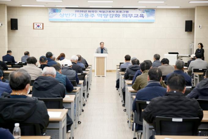 [µ¥Àϸ®Àü³² = Á¤Ã¶¿ø ±âÀÚ] ¿µ±¤±ºÀº Áö³ 25ÀÏ ¿µ±¤±º ³ó¾÷±â°è±³À°°ü 2Ãþ ´ë°Àǽǿ¡¼ 2026³â ¿Ü±¹ÀÎ °èÀý±Ù·ÎÀÚ ÇÁ·Î±×·¥ °í¿ëÁÖµéÀ» ´ë»óÀ¸·Î Àǹ«±³À°À» ½Ç½ÃÇß´Ù°í ¹àÇû´Ù.