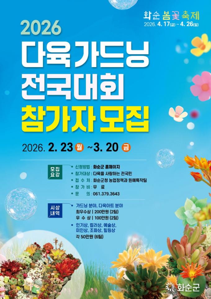 [µ¥Àϸ®Àü³² = ÃÖ¼ö¿¬ ±âÀÚ] ȼø±º(±º¼ö ±¸º¹±Ô)Àº 2¿ù 23ÀÏ(¿ù)ºÎÅÍ 3¿ù 20ÀÏ(±Ý)±îÁö ¡®2026 ´ÙÀ° °¡µå´× Àü±¹´ëȸ¡¯ Âü°¡ÀÚ¸¦ ¸ðÁýÇÑ´Ù°í ¹àÇû´Ù.