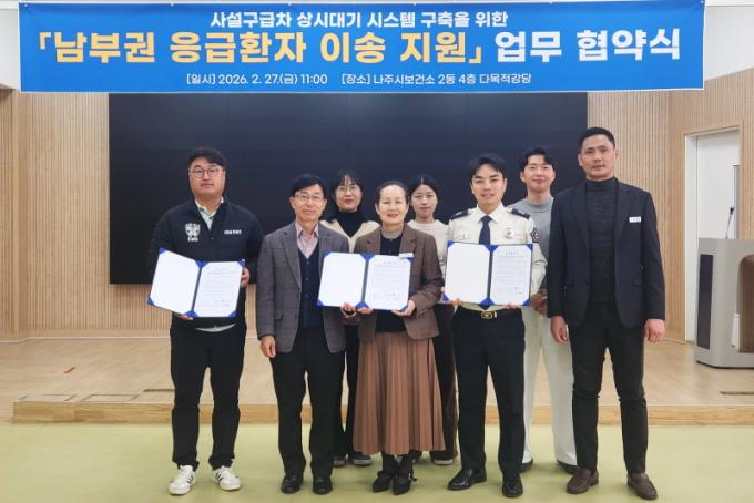 ³ªÁֽú¸°Ç¼Ò´Â 27ÀÏ º¸°Ç¼Ò 4Ãþ ´Ù¸ñÀû°´ç¿¡¼ ÀÌâ119¾ÈÀü¼¾ÅÍ, Àü³²EMS¿Í ³²ºÎ±Ç ÀÀ±ÞȯÀÚ ÀÌ¼Û Áö¿ø»ç¾÷ÀÇ ¿øÈ°ÇÑ ÃßÁøÀ» À§ÇÑ ¾÷¹«Çù¾àÀ» ü°áÇß´Ù°í ¹àÇû´Ù.