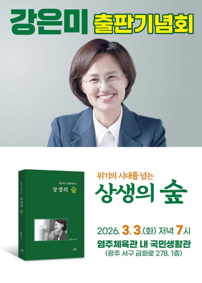 [µ¥Àϸ®Àü³² = ÃÖ¼ö¿¬ ±âÀÚ] °Àº¹Ì Àü ±¹È¸ÀÇ¿ø(Çö Á¤ÀÇ´ç ±¤ÁÖ±¤¿ª½Ã´çÀ§¿øÀå)ÀÌ 3¿ù 3ÀÏ Àú³á 7½Ã, ¿°ÁÖüÀ°°ü ³» ±¹¹Î»ýȰ°ü¿¡¼ ¡®»ó»ýÀÇ ½£¡¯(°Àº¹ÌÀÇ ¹ßǰÁ¤Ä¡¥²) ÃâÆÇ±â³äȸ¸¦ ¿¬´Ù. °Àº¹ÌÀÇ ¹ßǰÁ¤Ä¡ ½Ã¸®ÁîÀÇ ¼¼ ¹øÂ° Ãâ°£ÀÌ´Ù.