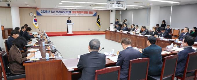 [µ¥Àϸ®Àü³² = ÃÖ¼ö¿¬ ±âÀÚ] Àü¶ó³²µµÀÇȸ(ÀÇÀå ±èűÕ)´Â 4ÀÏ µµÀÇȸ ÃÊÀǽǿ¡¼ Á¦5±â ÀÇÁ¤ÀÚ¹®À§¿øÈ¸ 2026³â Á¦1Â÷ ȸÀǸ¦ °³ÃÖÇϰí, Àü³²±¤ÁÖÇàÁ¤ÅëÇÕÆ¯º°¹ý Åë°ú¿¡ µû¸¥ Áö¿ª ±ÕÇü¹ßÀü ¹× ÀÇȸÀÇ ¿ªÇÒÀ» ÁÖÁ¦·Î ³íÀǸ¦ ÁøÇàÇß´Ù.