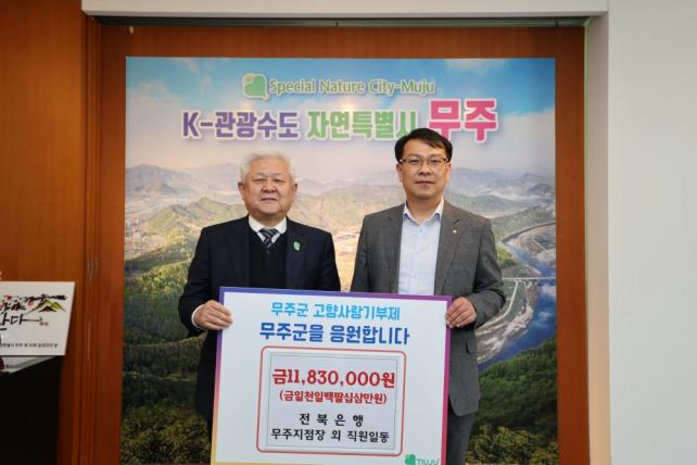 ÀüºÏÀºÇà ¹«ÁÖÁöÁ¡Àº Áö³ 2023³âºÎÅÍ 4³â ¿¬¼Ó °íÇâ»ç¶û ±âºÎ¿¡ µ¿Âü(7,343¸¸ ¿ø ±âŹ)ÇÏ¸ç ¡®°íÇâ»ç¶û ¹«ÁÖ»ç¶û¡¯ È«º¸¿¡ ¾ÕÀå¼°í ÀÖ´Ù.