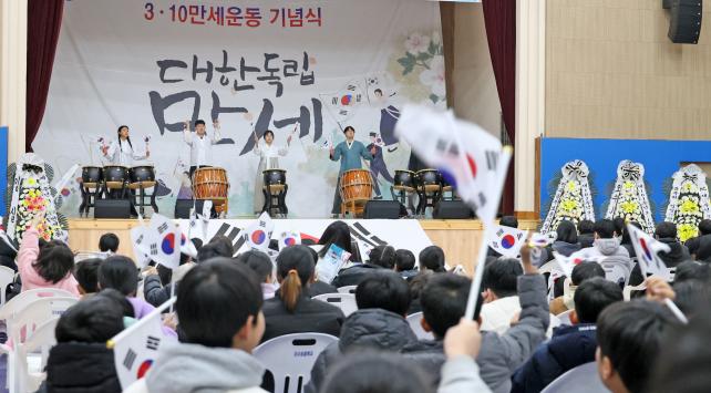 [µ¥Àϸ®Àü³² = ±è¼ºÇö ±âÀÚ] ¡®Á¦107Áֳ⠿À¼ö 3.10¸¸¼¼ ±â³ä Çà»ç¡¯°¡ ¿À¼ö¸¦ »ç¶ûÇϴ û³âȸ(ȸÀå Àå¾çÃà) ÁÖ°üÀ¸·Î 3¿ù 10ÀÏ ÀӽDZº ¿À¼ö¸é ÀÏ´ë¿¡¼ ¼º´ëÇÏ°Ô ¿·È´Ù. À̹ø Çà»ç´Â 1919³â 3¿ù 10ÀÏ ´ç½Ã ¿À¼ö º¸ÅëÇб³ ÇлýµéÀÇ ¸¸¼¼ ¿îµ¿À» ±â¸®±â À§ÇØ ¸¶·ÃµÆÀ¸¸ç, 300¿©¸íÀÇ ÁֹεéÀÌ Âü¼®ÇÏ¿© ±×³¯ÀÇ Àǹ̸¦ µÇ»õ±â´Â ¶æ±íÀº ±â³ä½ÄÀÌ µÇ¾ú´Ù.