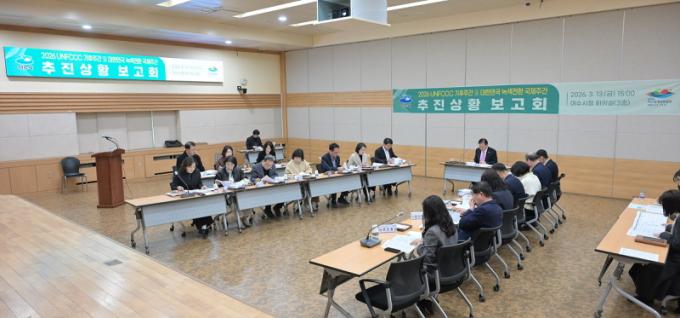 [µ¥Àϸ®Àü³² = ÃÖ¼ö¿¬ ±âÀÚ] ¿©¼ö½Ã´Â À¯¿£±âÈĺ¯ÈÇù¾à(UNFCCC) ±âÈÄÁÖ°£ Çà»ç¸¦ 40¿© ÀÏ ¾ÕµÐ 13ÀÏ Á¤Çö±¸ ½ÃÀå ±ÇÇÑ´ëÇà ÁÖÀç·Î ¡®À¯¿£±âÈĺ¯ÈÇù¾à ±âÈÄÁÖ°£ ¹× ´ëÇѹα¹ ³ì»öÀüȯ ±¹Á¦ÁÖ°£¡¯ ¼º°ø °³ÃÖ¸¦ À§ÇÑ ºÎ¼º° ÃßÁø»óȲ º¸°íȸ¸¦ °³ÃÖÇß´Ù°í ¹àÇû´Ù.
