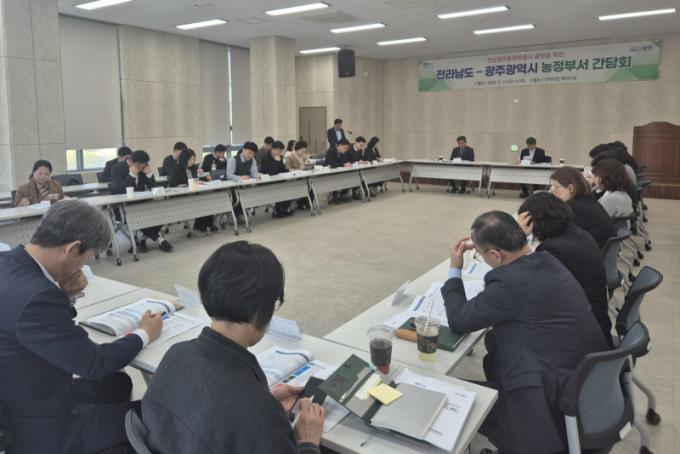 ±¤ÁÖ±¤¿ª½Ã(½ÃÀå °±âÁ¤)´Â Àü¶ó³²µµ¿Í ÇÔ²² 13ÀÏ ±¤ÁÖ±èġŸ¿î ¹ßÈ¿½Äǰ°ü ¼¼¹Ì³ª½Ç¿¡¼ ¡®Àü³²–±¤ÁÖ ³óÁ¤ºÎ¼ °£´ãȸ¡¯¸¦ ¿°í, ÅëÇÕ ÀÌÈÄÀÇ ³ó¾÷ ½Ã³ÊÁö¸¦ ±Ø´ëÈÇϱâ À§ÇÑ ±¸Ã¼ÀûÀÎ Çù·Â °úÁ¦¸¦ ³íÀÇÇß´Ù.