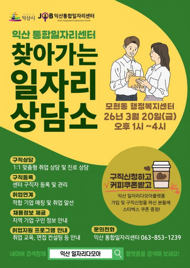 ¸Å¿ù ¼Â° ÁÖ ±Ý¿äÀϸ¶´Ù ÀÍ»ê ÅëÇÕÀÏÀÚ¸®¼¾ÅÍ Àü¹® »ó´ã»ç°¡ À¾¡¤¸é¡¤µ¿ ÇàÁ¤º¹Áö¼¾Å͸¦ ¼øÈ¸ ¹æ¹®ÇØ ±¸Á÷ »ó´ã°ú ±¸Á÷ µî·ÏÀ» Áö¿øÇÑ´Ù.