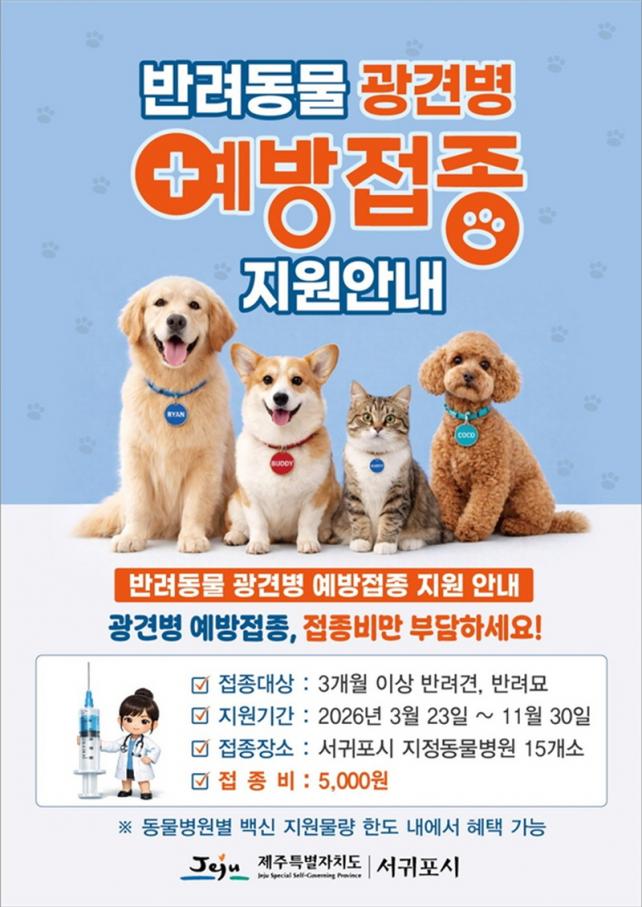 [µ¥Àϸ®Àü³² = ÃÖ¼ö¿¬ ±âÀÚ] ¼±ÍÆ÷½Ã´Â ½Ã¹Î°ú ¹Ý·Áµ¿¹°ÀÇ °Ç°°ú ¾ÈÀüÀ» À§ÇØ 2026³â 3¿ù 23ÀϺÎÅÍ 11¿ù ¸»±îÁö ¹Ý·Áµ¿¹° ±¤°ßº´ ¿¹¹æÁ¢Á¾À» ÃßÁøÇÑ´Ù°í ¹àÇû´Ù.