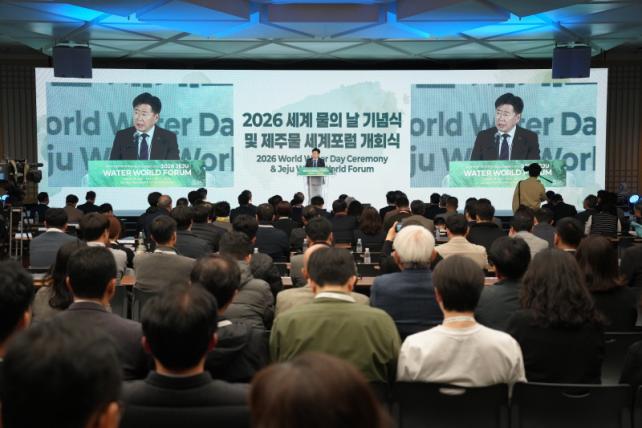 [µ¥Àϸ®Àü³² = ÃÖ¼ö¿¬ ±âÀÚ] Á¦ÁÖÆ¯º°ÀÚÄ¡µµ¿Í Á¦ÁÖ°³¹ß°ø»ç´Â 18ÀÏ Á¦ÁÖ±¹Á¦ÄÁº¥¼Ç¼¾ÅÍ(ICC)¿¡¼ ¡®2026 ¼¼°è ¹°ÀÇ ³¯ ±â³ä½Ä ¹× Á¦ÁÖ¹° ¼¼°èÆ÷·³¡¯À» ¿°í, ±âÈÄÀ§±â ½Ã´ë Á¦ÁÖ°¡ ³ª¾Æ°¥ Áö¼Ó°¡´ÉÇÑ ¹° °ü¸® ¸ðµ¨ÀÇ Ã»»çÁøÀ» Á¦½ÃÇß´Ù.
