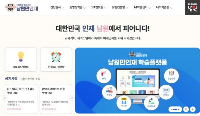 [µ¥Àϸ®Àü³² = ±è¼ºÇö ±âÀÚ] ³²¿ø½Ã´Â ±³À°¹ßÀüƯ±¸ »ç¾÷ÀÇ ÀÏȯÀ¸·Î °ü³» Áß·°íµîÇлýµéÀÇ ÇнÀ ¿ª·®À» °ÈÇϱâ À§ÇÑ ¡°³²¿ø ¡¸¸¸ÀÎÀ硹 Ç÷§Æû ¿Â¶óÀÎ ÇнÀ Áö¿ø»ç¾÷¡±À» º»°Ý ÃßÁøÇÑ´Ù°í ¹àÇû´Ù.